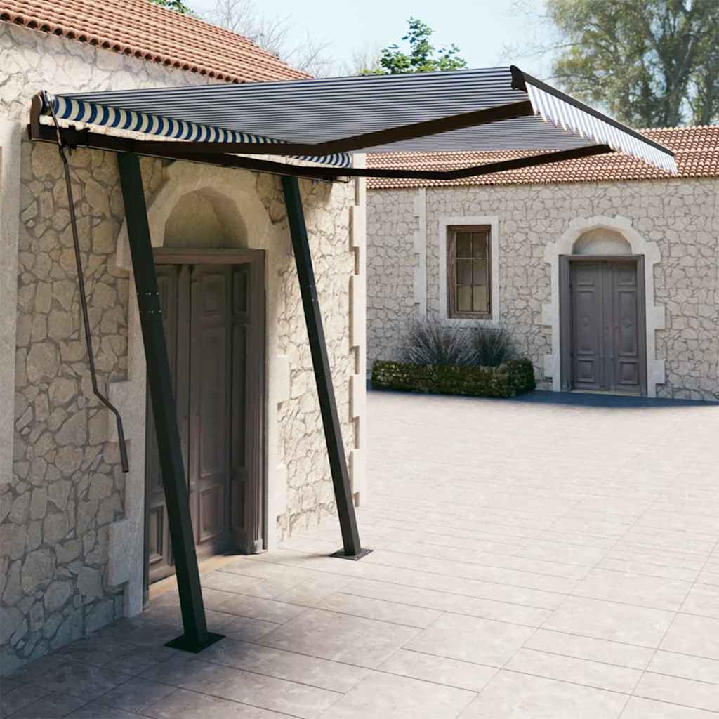 vidaXL Toldo retrátil manual independente 300x250 cm azul e branco