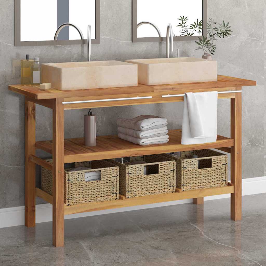 vidaXL Móvel lavatório teca maciça 132x45x75 cm