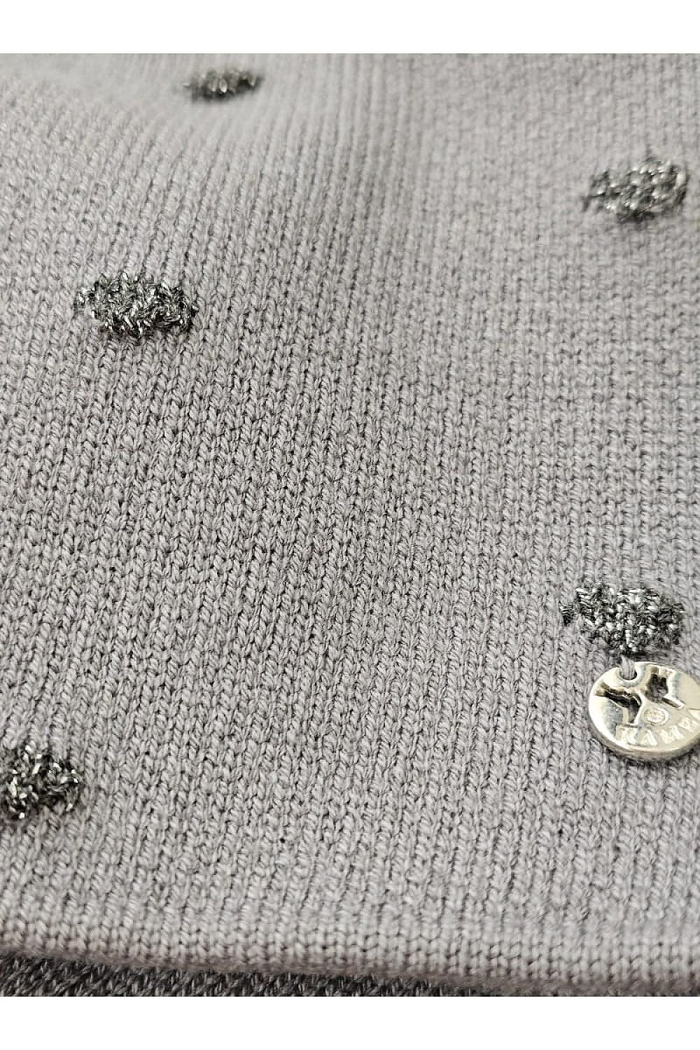 GORCZYCA is a winter hat in polka dots with a delicate shimmer, in gray color. The hat has a timeless shape and has been decorated with raised peas made of shiny yarn. It is made of high-quality yarn containing a large amount of viscose, which makes it extremely soft and pleasant to the touch. It will perfectly complement autumn-winter stylizations. The hat is available in several color variants.