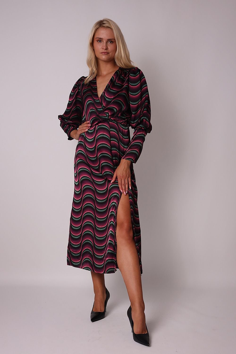 Our printed envelope midi dress is the perfect evening dress for the season! The slit at the bottom, envelope neckline, back zipper and long sleeves with cuffs make this dress look extra attractive. Match it with stilettos and a clutch bag and complete the styling!