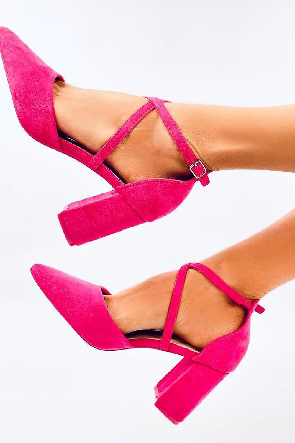 Women's high-heeled pumps with a height of 8.5 cm. Eye-catching crisscross straps beautifully accentuate the instep... The elegant design of these shoes is complemented by delicate pointed toes. You will fall in love with them at first sight! Outer material - faux suede.