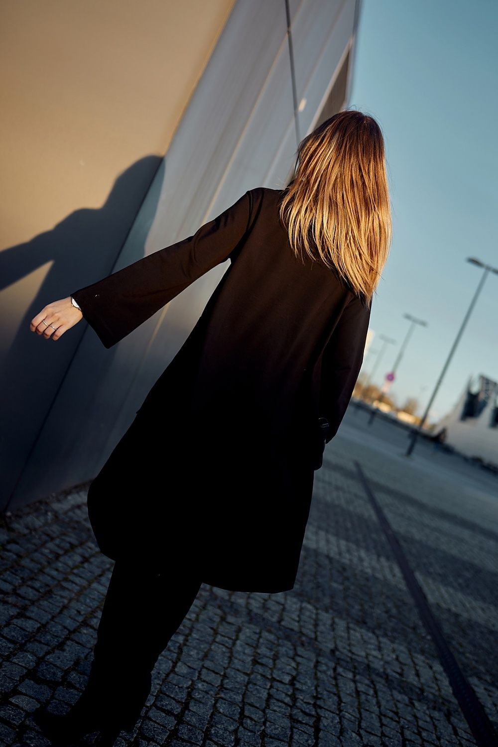 This asymmetrical everyday dress is the perfect choice for lovers of loose cuts and sophisticated casualness. The dress features long sleeves, a wide turtleneck and a large pocket.