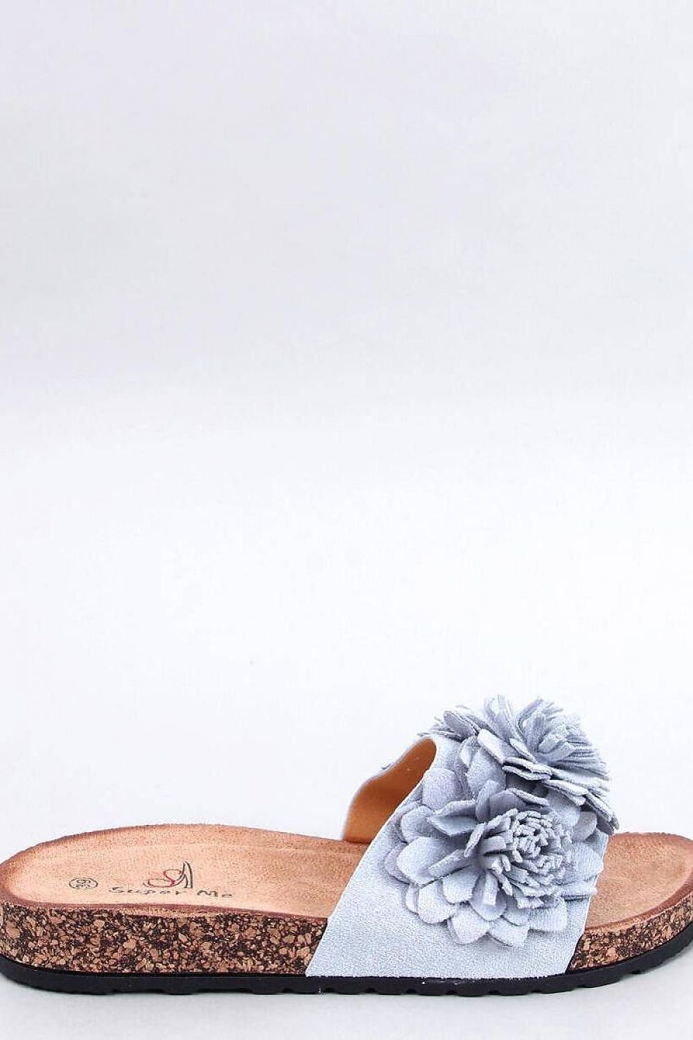 Women's suede sandals on cork. A floral applique wonderfully diversifies this timeless model... The contoured insole ensures comfort with every step. These are the perfect shoes for summer! Outer material - eco-friendly suede.