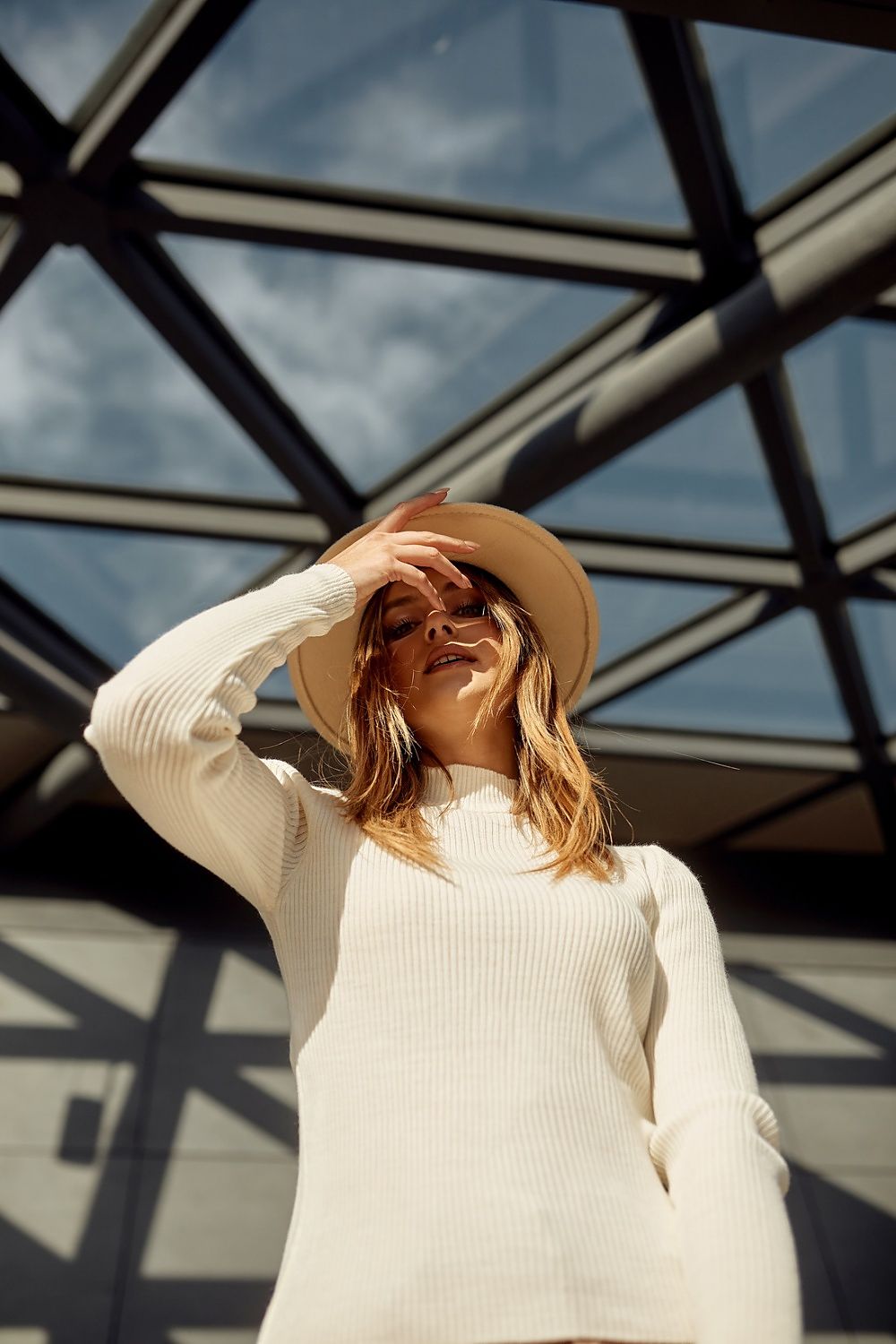 Soft sweater with half turtleneck fits perfectly to any figure. Long-sleeved sweater in cream color. This is a classic model that will serve you for many seasons.