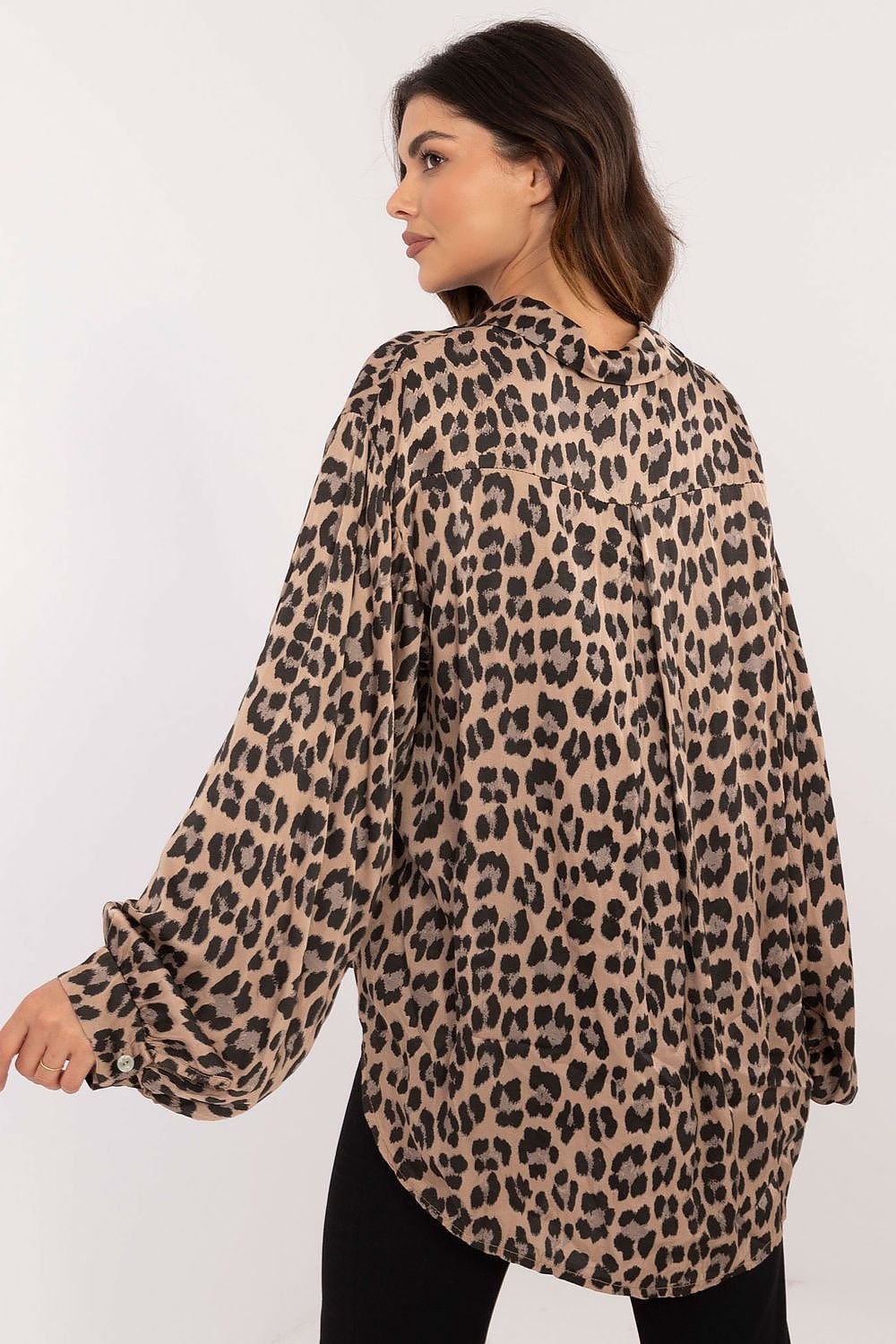 This unique shirt is the perfect combination of classic cut and modern design. It will be perfect for both everyday styling and more formal situations, such as at work. Soft and delicate viscose provides a pleasant feeling while wearing it. Smooth material with a subtle animal motif adds elegance and originality. Long, buff sleeves add a romantic touch and make the shirt lightweight. Practical buttons make it easy to put on and take off the shirt.