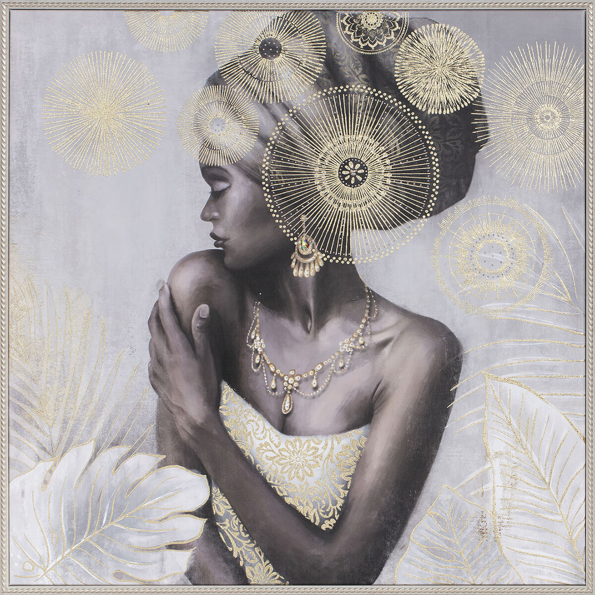 Pintura Home ESPRIT Colonial Dourado Africana 80 x 2,8 x 80 cm (2 Unidades)