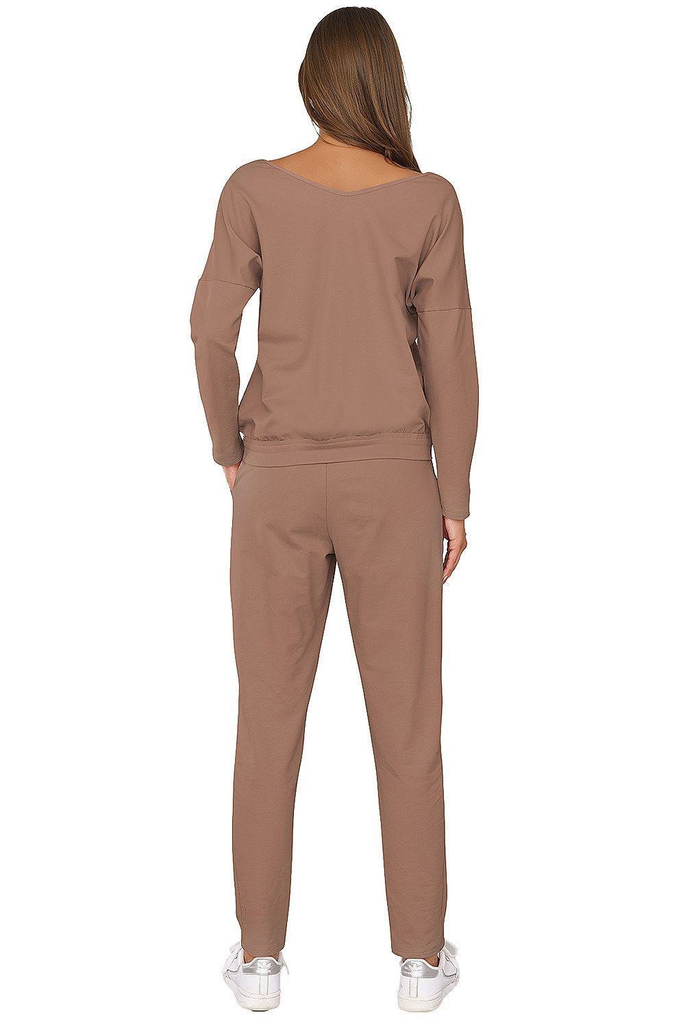 Women's sweatshirt set consisting of a sweatshirt and pants. Sweatshirt with long sleeves and a v-neck. Long pants with pleats, elastic waistband and slip pockets.