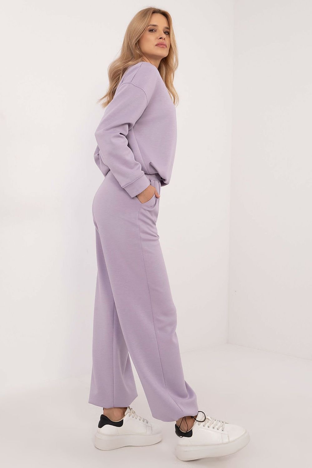 This casual sweatshirt set, consisting of a sweatshirt and pants, is the perfect combination of comfort and fashionable design. Made from a high-quality blend of cotton, viscose, elastane and polyester, it provides pleasure of wearing and durability. The smooth pattern and classic form make the set a perfect fit for everyday styling. The long-sleeved blouse with a heart-shaped neckline adds a subtle touch while ensuring comfort. The high-waisted pants with tapered legs ending in ribbed cuffs emphasize the silhouette, while the side slip pockets are a practical addition. This set is perfect for relaxing at home, going for a walk or casual outings with friends. Pair it with your favorite sneakers to create a stylish and comfortable outfit for any occasion!
