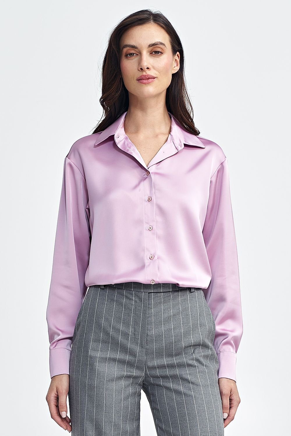 A body with a regular cut, made of satin-effect material, which adds elegance and subtle shine. It has a classic collar and long sleeves with cuffs, giving the whole a timeless style. The front closure with buttons and snaps at the crotch provide comfort and ease of wearing. The bottom part, i.e. the panties, are made of stretchy material, ensuring a perfect fit to the silhouette and comfort throughout the day. This body combines classic design with modern finishing, creating a versatile wardrobe item.