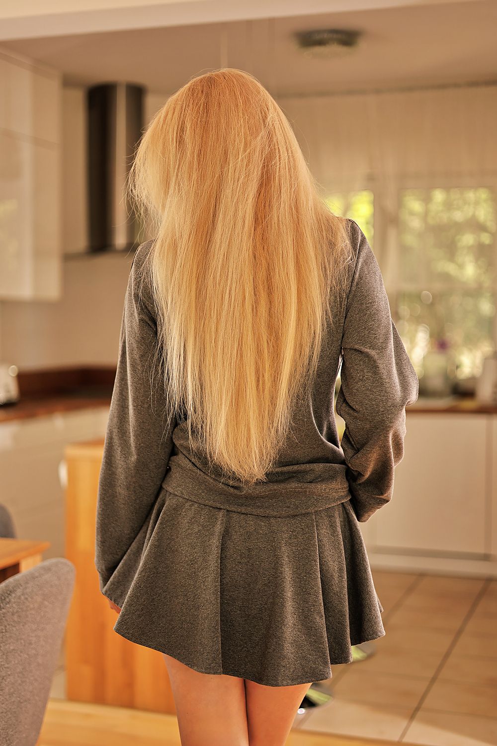 Cotton shorts combined with a skirt. Made of sweatshirt fabric, they are not only comfortable but also practical. Fitted shorts will work well for various activities, not just sports. The short skirt sewn on as an outer layer will add a girly character to the outfit. The Nai model is adorned with a narrow gold trim at the waist.