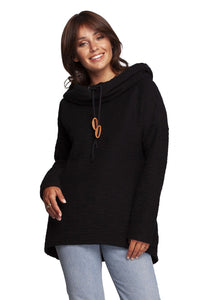 A warm sweatshirt when cold days come is a must. Our proposal is all the more practical, because it can also serve as a tunic, with a slightly oversized cut with a collar and hood.