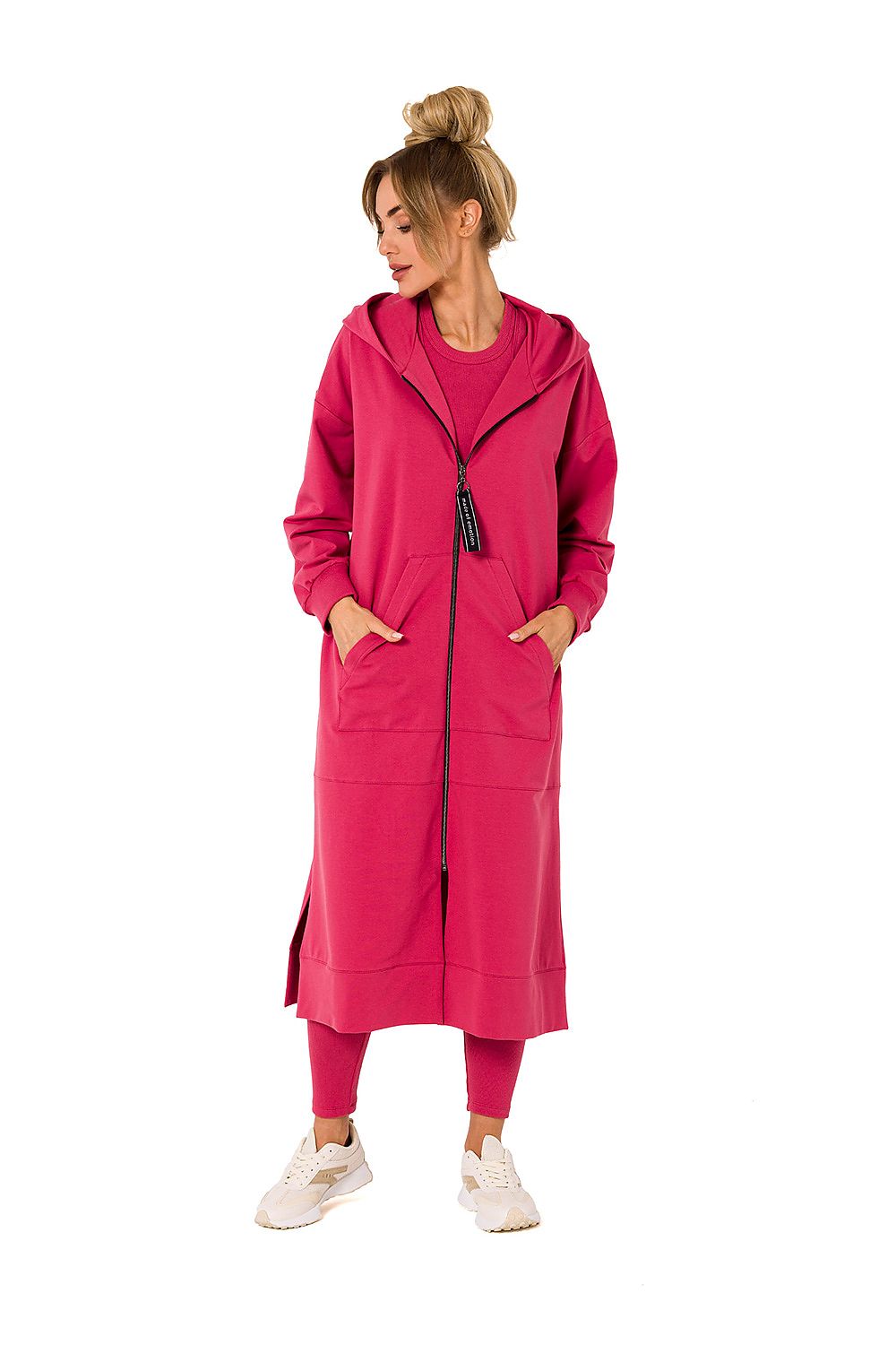 A long hooded sweatshirt with a hood and pockets, zippered will replace a jacket or coat on cold days.