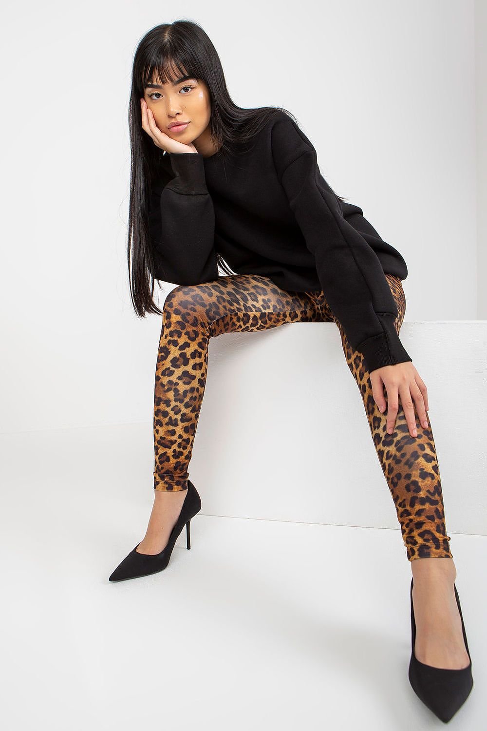 Women's sweatshirt with a looser cut made of warm cotton. The sweatshirt has a round neckline and long sleeves. Bottom and sleeves finished with a ribbed hem in the same color. A proposal ideal for everyday and not only.