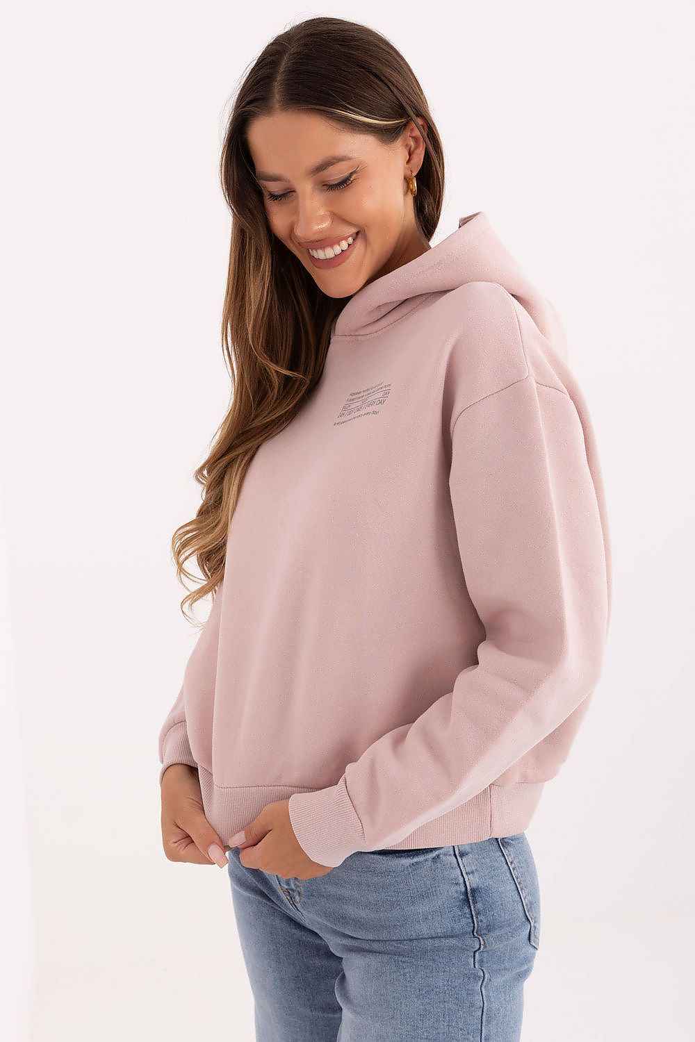 Women's hoodie in a casual style, perfect for everyday occasions. Made of a blend of cotton and polyester, it provides comfort and pleasant warmth. The model with long sleeves and a practical hood, gently insulated for greater comfort. On the front there is a subtle, small print, and the smooth material makes the hoodie easy to match with various stylizations.