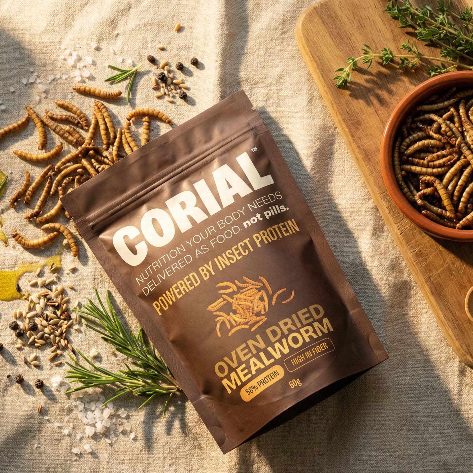 O snack mais honesto que vais encontrar. Um ingrediente: tenébrio desidratado. É tudo.