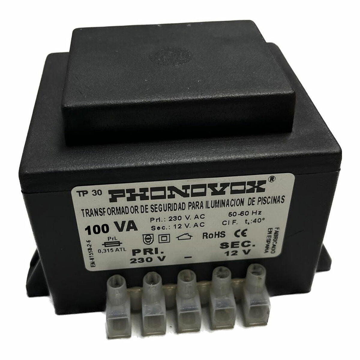 Transformador de segurança para iluminação de piscinas PHONOVOX tp31100 100 VA 12 V 230 V 50-60 Hz 9,8 x 7,9 x 7,4 cm
