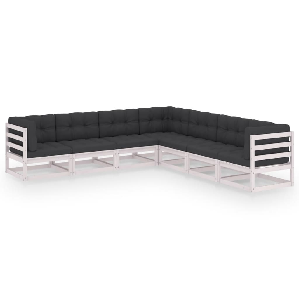 vidaXL 7 pcs conjunto lounge de jardim pinho sólido branco