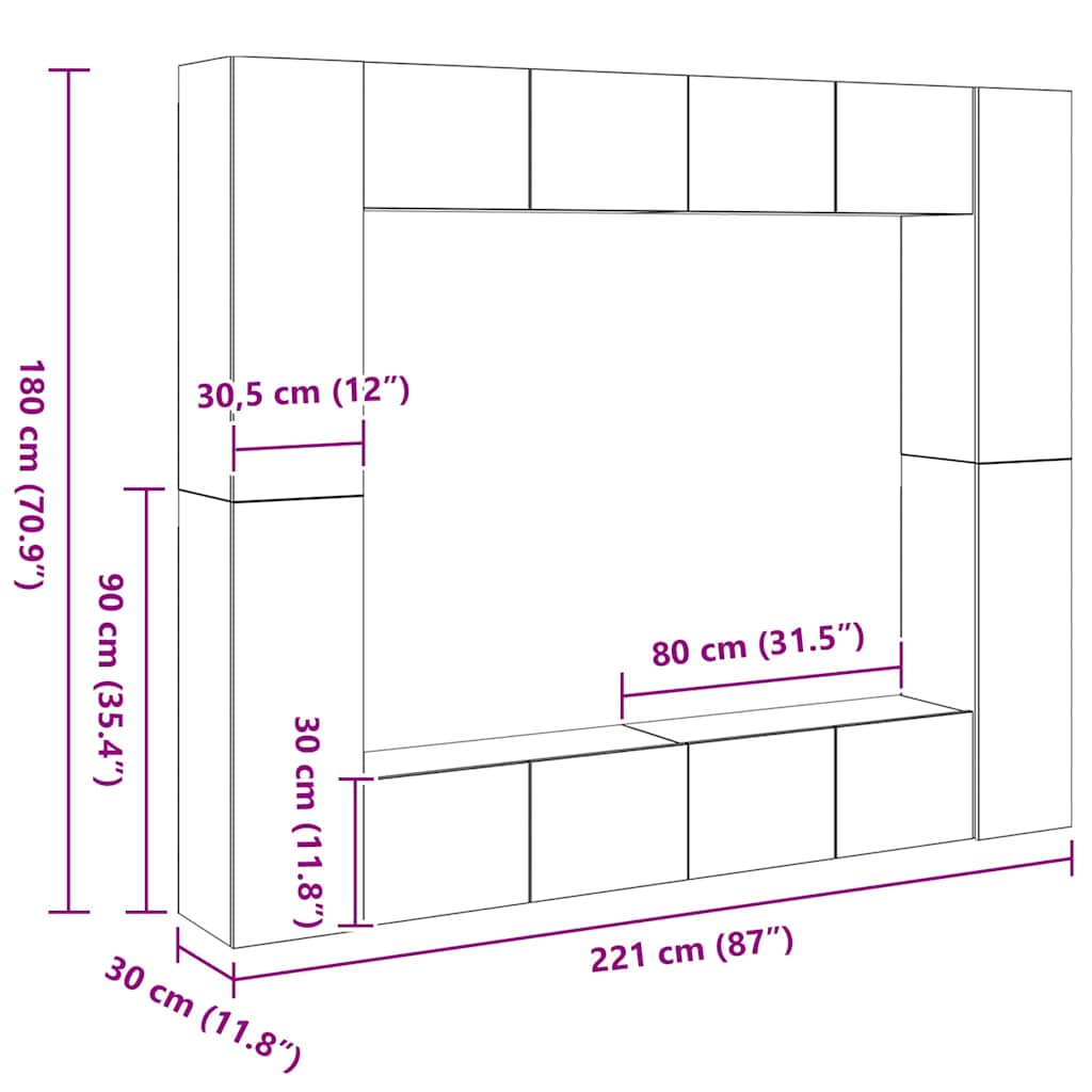 vidaXL 8 pcs conjunto de móveis de TV contraplacado branco