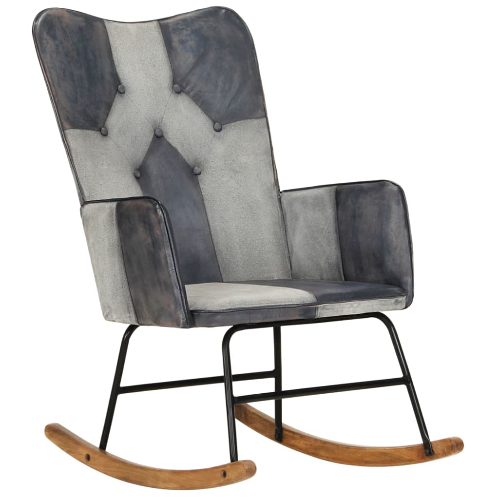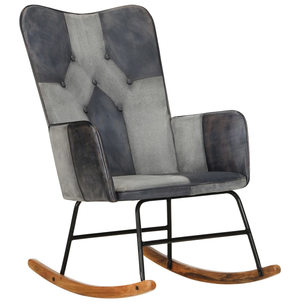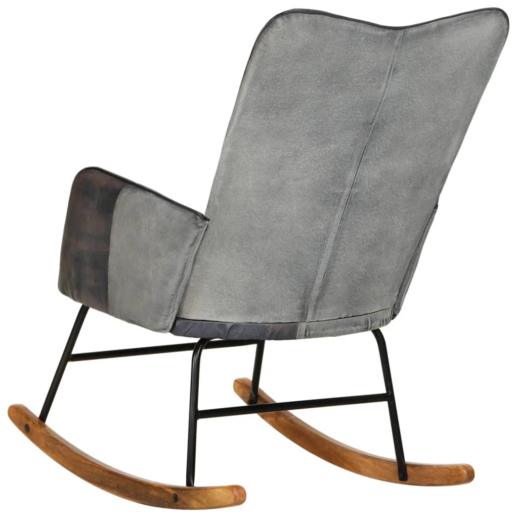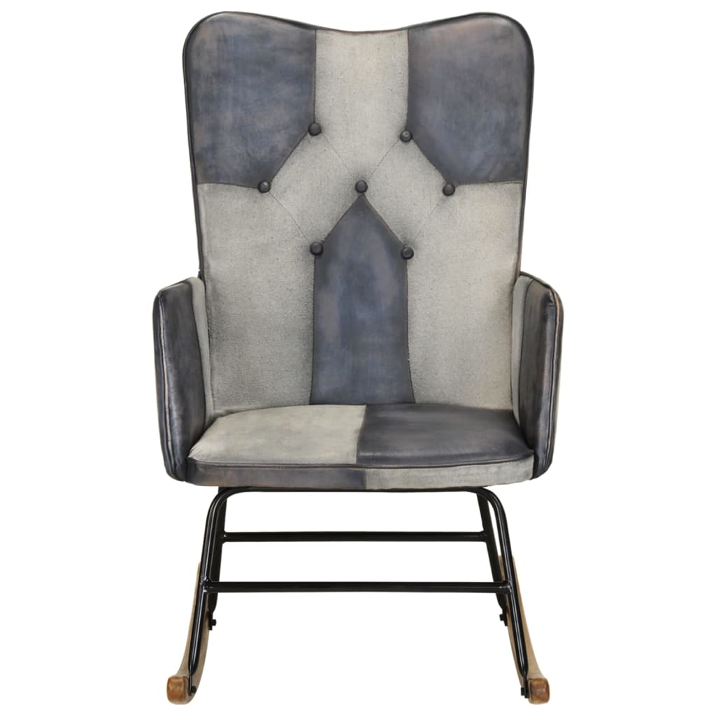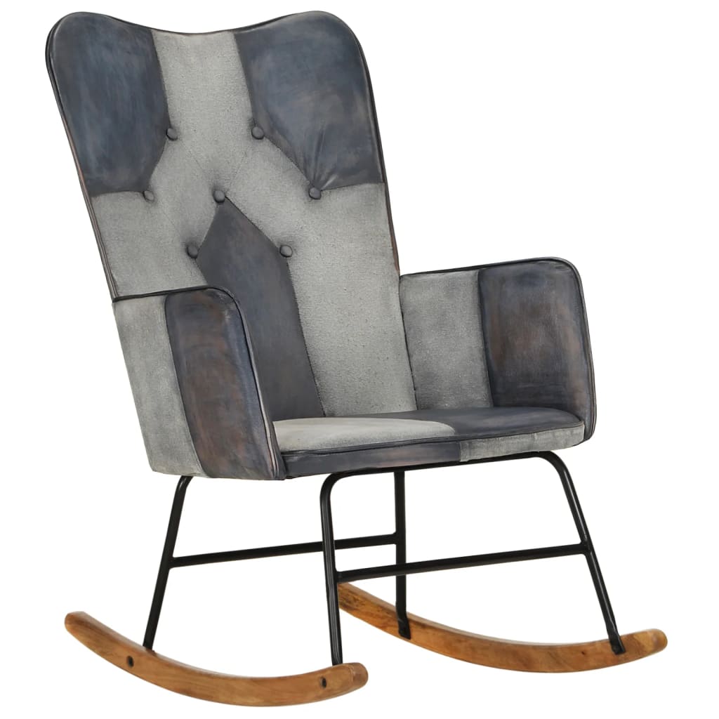vidaXL Cadeira de baloiço couro genuíno e lona cinzento