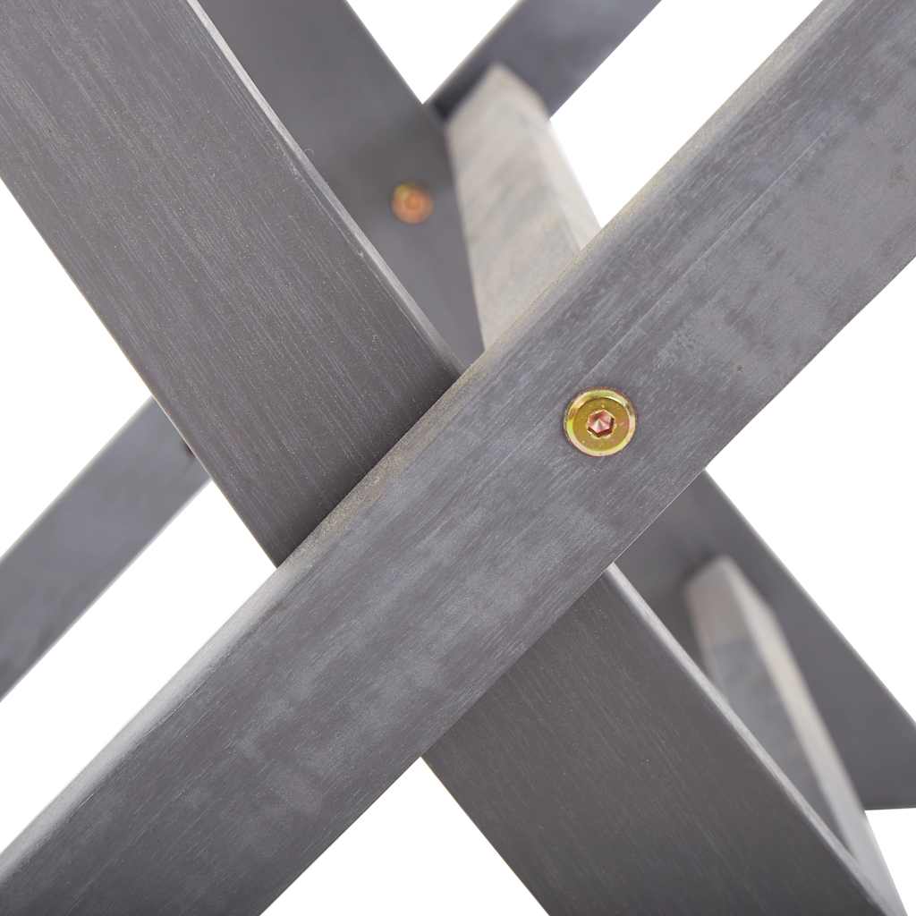 Estas cadeiras de jantar são feitas em madeira de acácia de alta qualidade, uma madeira tropical que é resistente às intempéries e altamente durável. A superfície cinzento lavado é fácil de limpar utilizando apenas um pano húmido. As cadeiras podem ser dobradas quando não estiverem a ser utilizadas de forma a poupar espaço.
