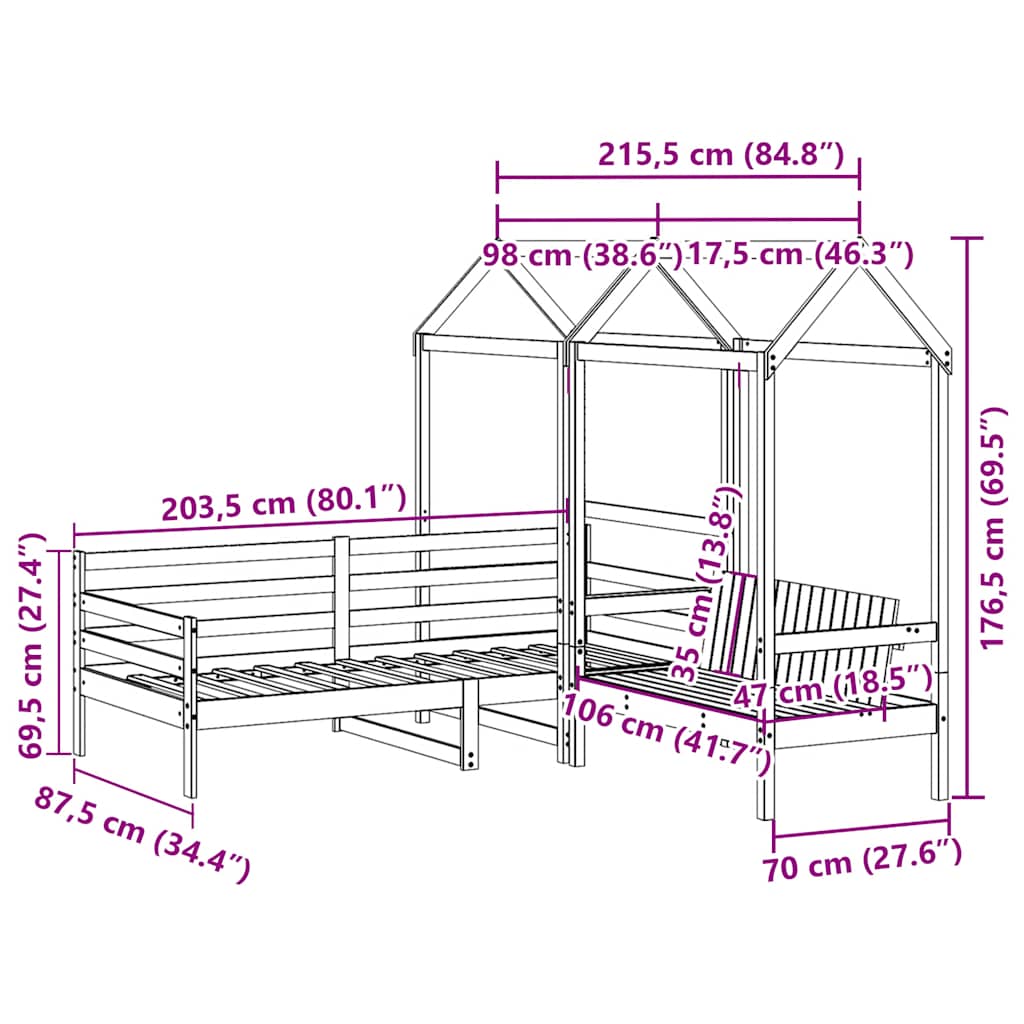 vidaXL Conj. sofá-cama e banco c/ telhado 80x200cm pinho maciço branco