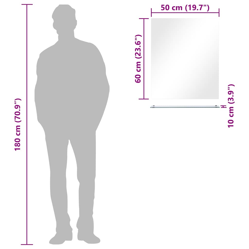 vidaXL Espelho de parede c/ prateleira vidro temperado 50x60 cm