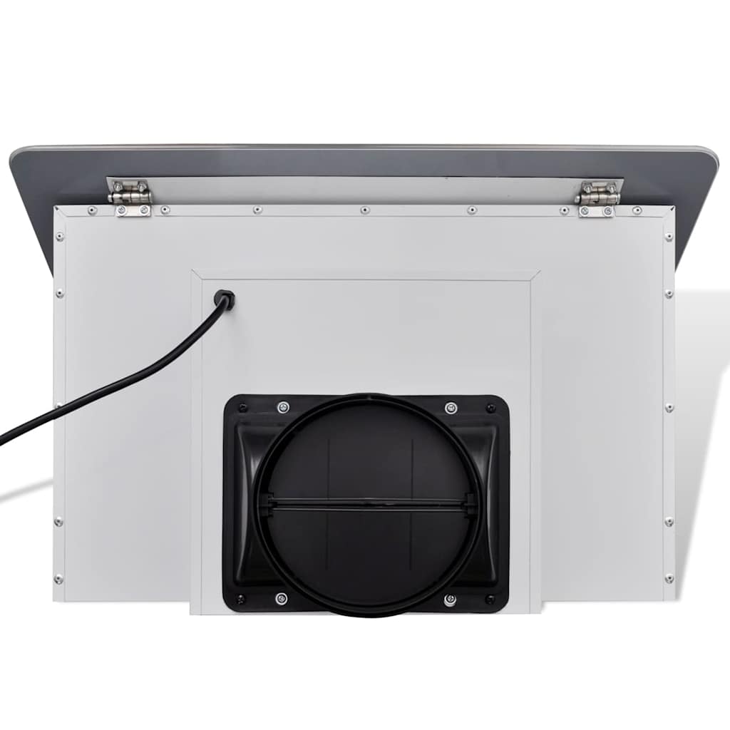 Possui um potente ventilador de 720 m³/h, dois filtros de gordura laváveis em alumínio, e um orifício de ventilação interno para ar. As duas luzes LED embutidas iluminam a superfície de cozimento por baixo. Também tem um ecrã tátil com visor digital, permitindo-lhe controlar facilmente o exaustor.