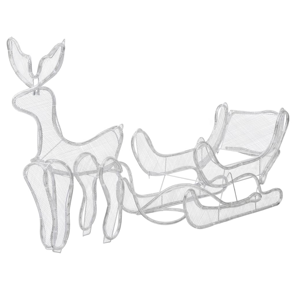 Esta atraente iluminação de Natal em forma de rena e trenó, com luzes LED e uma rede, é a decoração perfeita.