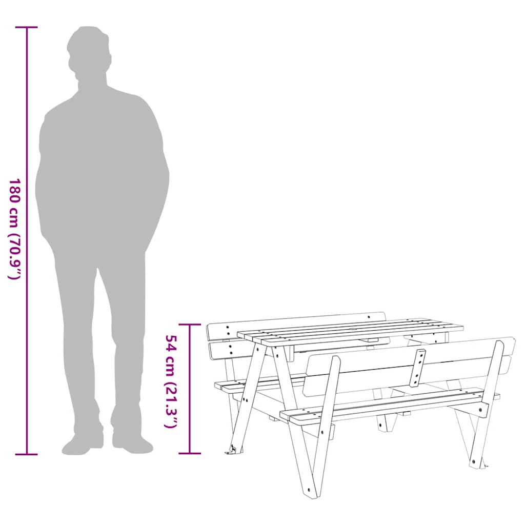 Esta mesa de piquenique é perfeita para pátios, jardins e espaços exteriores, proporcionando um local confortável e convidativo para os seus filhos e os seus amigos relaxarem e desfrutarem.