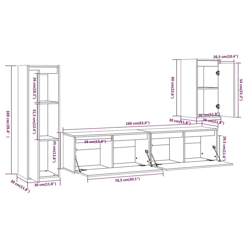 vidaXL Móveis de TV 4 pcs madeira de pinho maciça