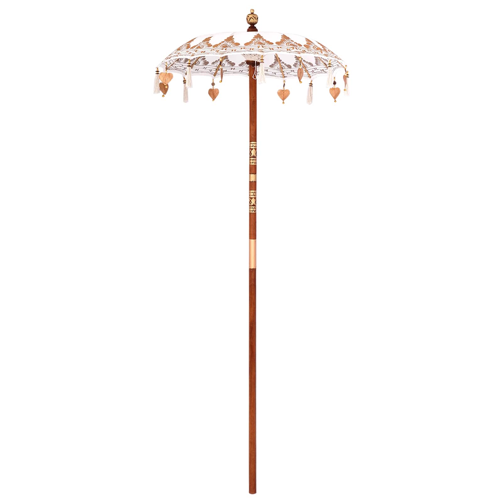 O Guarda-sol Balinês com Base traz a beleza tranquila da cultura balinesa e detalhes artesanais, adicionando um toque exótico a qualquer espaço externo. Com um dossel opaco de algodão creme, sustentado por um forte pole de madeira, ele oferece bastante sombra enquanto complementa seu ambiente com um estilo relaxante. Ideal para garden resorts, lounges em terraços ou qualquer lugar ao ar livre que precise de um charme tropical, sua forma redonda e materiais naturais evocam um estilo atemporal, perfeito para encontros em tardes ensolaradas.
