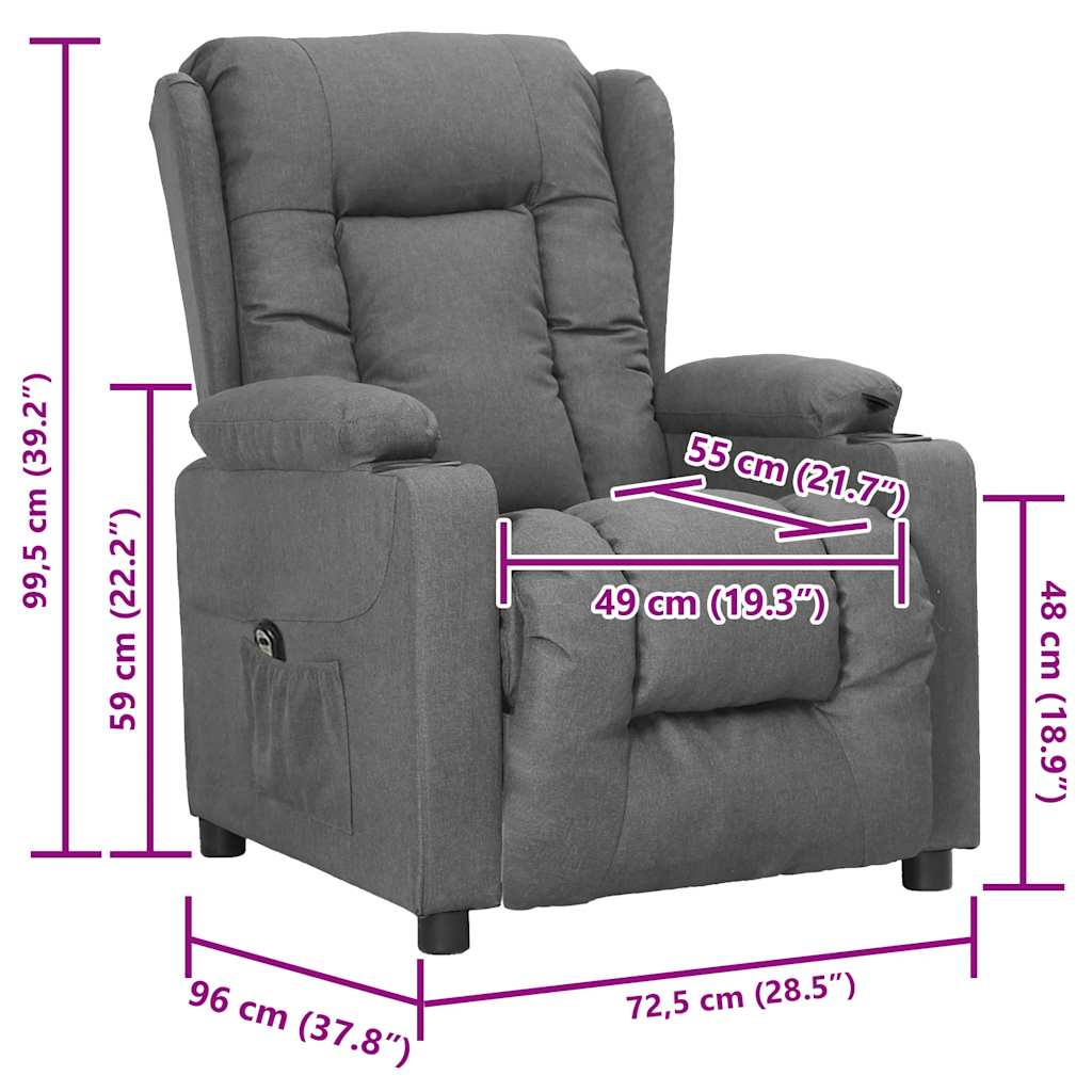 vidaXL Poltrona elevatória tecido cinzento-claro